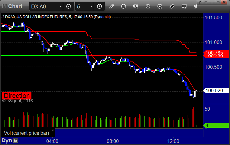Here’s a look at the US Dollar Index intraday with our market directional lines: