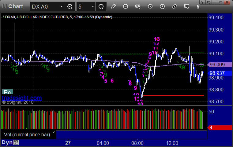 Here’s a look at the US Dollar Index intraday with our market directional lines: