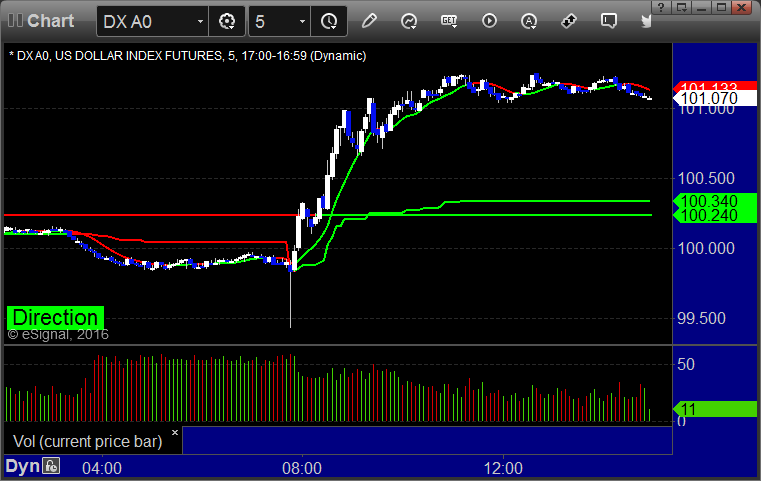 Here’s a look at the US Dollar Index intraday with our market directional lines: