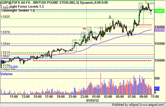 Note how precisely on the move up the GBPUSD stopped at the green tri-star level at A: