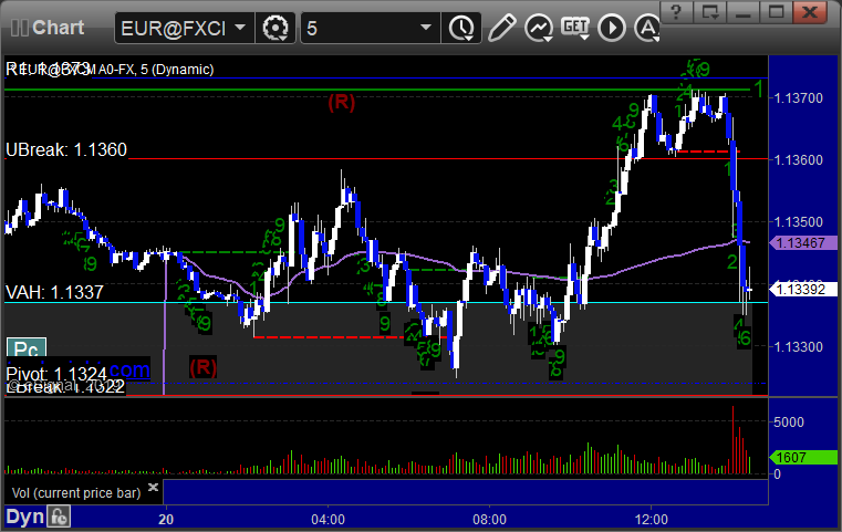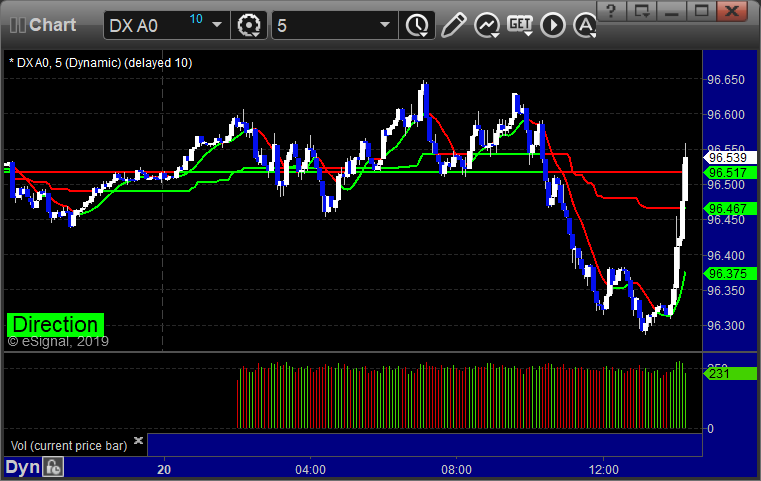 Amazingly, no triggers again as the Forex markets remain slow. Here’s a look at the US Dollar Index intraday with our market directional lines: EURUSD: PrevNext