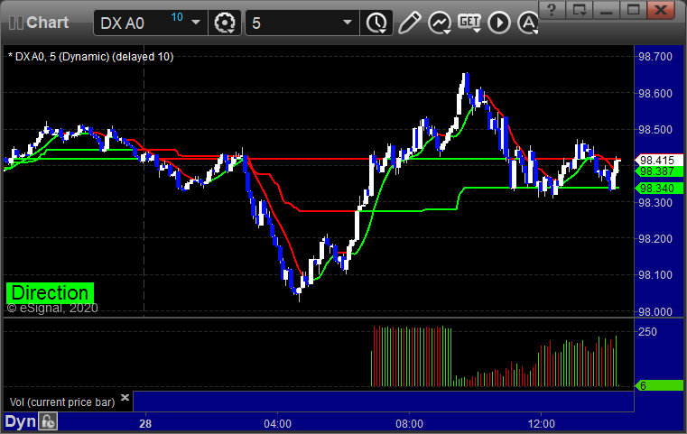 Here’s a look at the US Dollar Index intraday with our market directional lines: