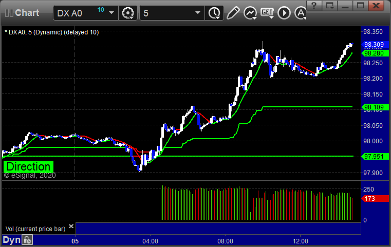 Here’s a look at the US Dollar Index intraday with our market directional lines: