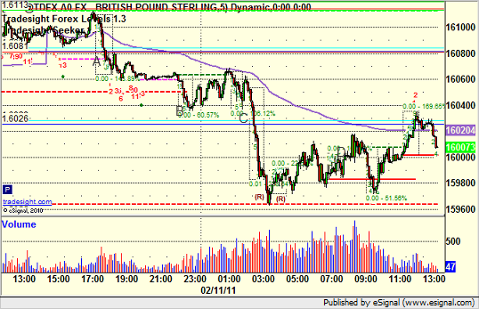Triggered short early at A, hit first target at B or C depending on exactly what number you used, went lower, lowered stop in the morning, stopped out of the last piece at D for a nice winner:
