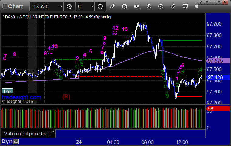 Here’s a look at the US Dollar Index intraday with our market directional lines: