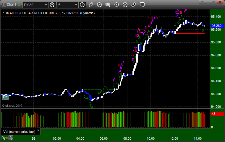 Here’s a look at the US Dollar Index intraday with our market directional lines: