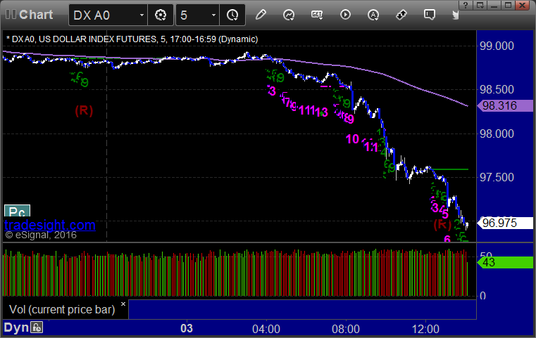 Here’s a look at the US Dollar Index intraday with our market directional lines: