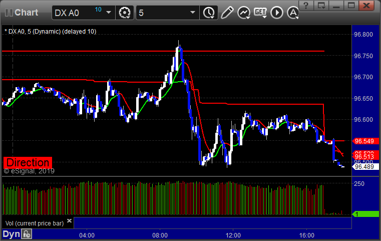 Here’s a look at the US Dollar Index intraday with our market directional lines: