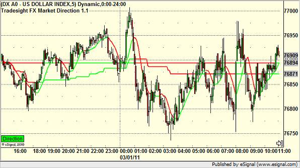All you have to do is look at the chart of the US Dollar Index for the session to see that this was a messy day that went nowhere. We crossed the opening level and the midpoint several times and closed around there too: