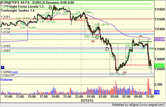 Triggered long at A and hit target (no partials, we were just selling the whole thing today) at B. Triggered short at C (didn’t break the level by enough an hour earlier to enter) and closed whole thing at target at D: