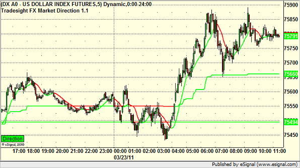 US Dollar got stronger during the session eventually. Here’s the Dollar Index intraday with our market directional tool: