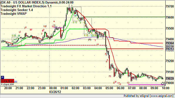 Here’s the US Dollar Index intraday with our market directional lines: