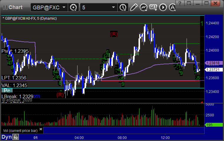 Nothing triggered in a narrow (relatively speaking) session. Here’s a look at the US Dollar Index intraday with our market directional lines: GBPUSD: PrevNext