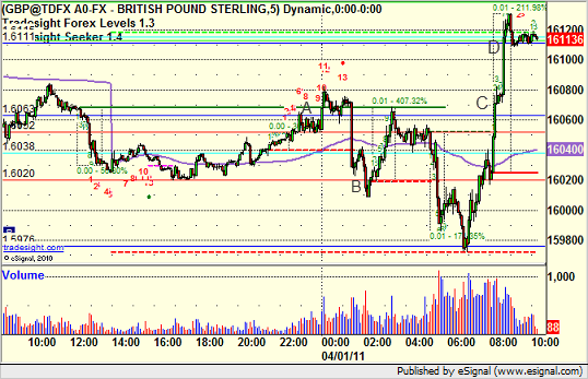 Triggered long at A and short at B, both half size ahead of NFP, and both stopped. Triggered long at C, hit first target at D, closed final piece at the end of the chart: