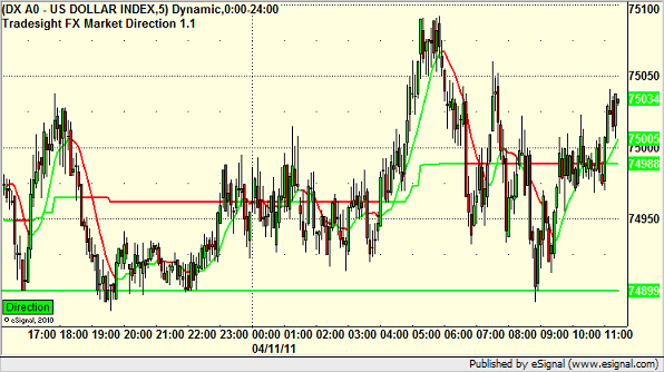 Here’s the Dollar index intraday with market directional lines, not much movement: