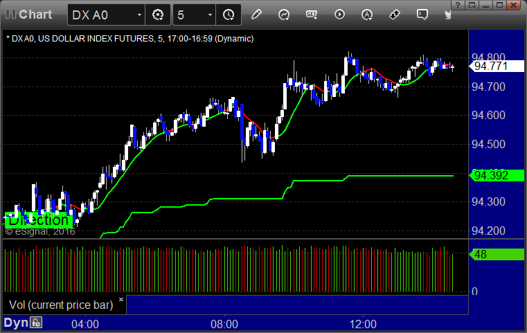 Here’s a look at the US Dollar Index intraday with our market directional lines: