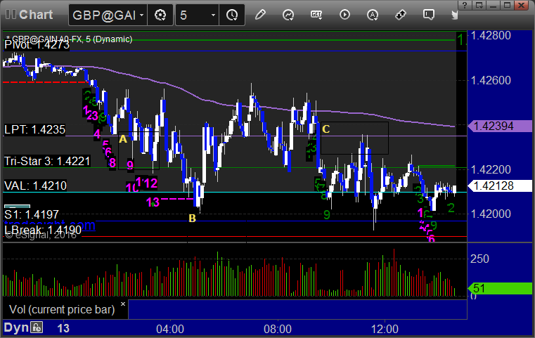 Triggered short at A, came within 2 pips of S1 at B so should have got you a partial, and closed the second half at C in the morning: