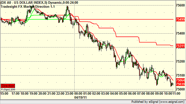 US Dollar declined overnight, here’s the index with market directional tool lines: