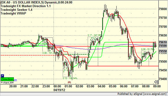 Here’s the US Dollar Index intraday with our market directional lines: