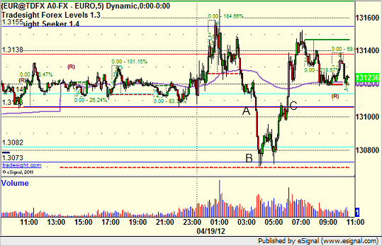 Triggered short at A, hit first target at B, lowered stop in the morning and stopped at C just over entry: