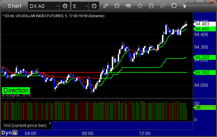 Here’s a look at the US Dollar Index intraday with our market directional lines: