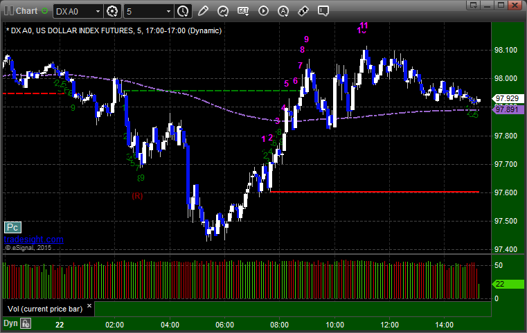Here’s a look at the US Dollar Index intraday with our market directional lines: