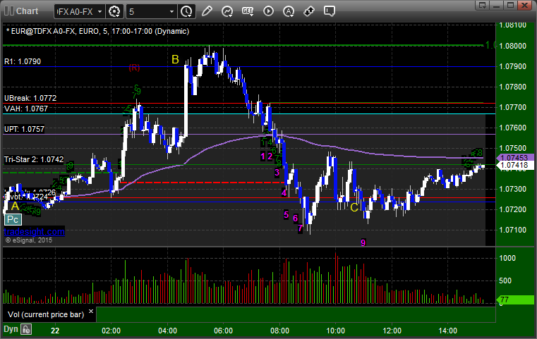 Triggered short at A and stopped. Triggered long at B and stopped. Also triggered in the morning at C and closed for end of session: