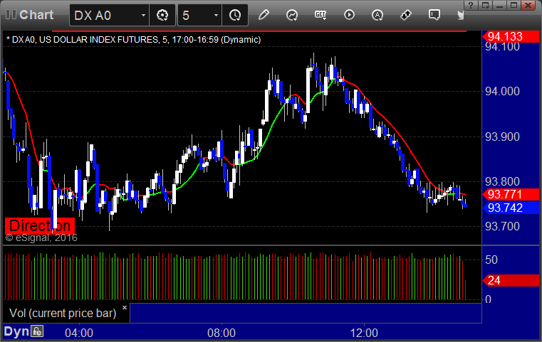 Here’s a look at the US Dollar Index intraday with our market directional lines: