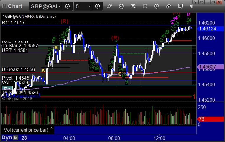 Triggered long at A, hit first target at B, stopped second half at C in the morning: