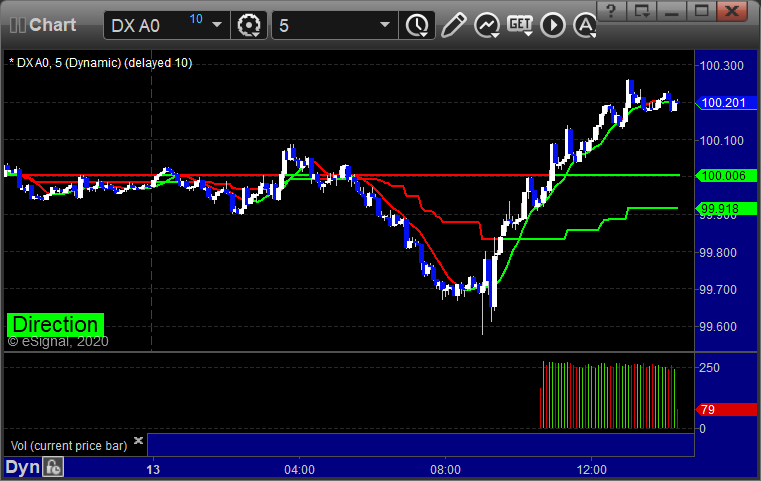 Here’s a look at the US Dollar Index intraday with our market directional lines: