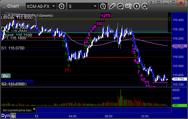 I didn’t make any calls based on the Levels spacing, but if you look at the charts, the 13 signals on the AUDUSD, GBPUSD, and (both ways) on the EURJPY all worked for the session, easy money. Check out the EURJPY in particular below.