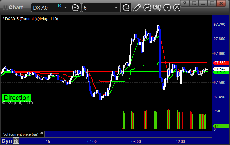 Here’s a look at the US Dollar Index intraday with our market directional lines: