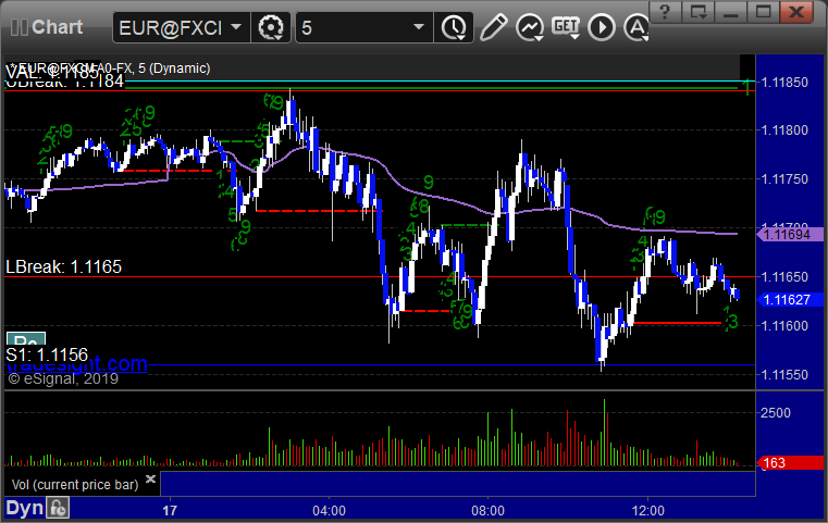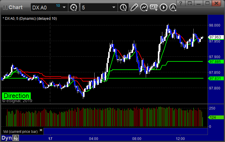 Here’s a look at the US Dollar Index intraday with our market directional lines: