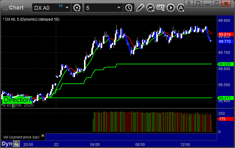 Here’s a look at the US Dollar Index intraday with our market directional lines: