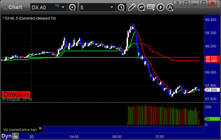 Here’s a look at the US Dollar Index intraday with our market directional lines: