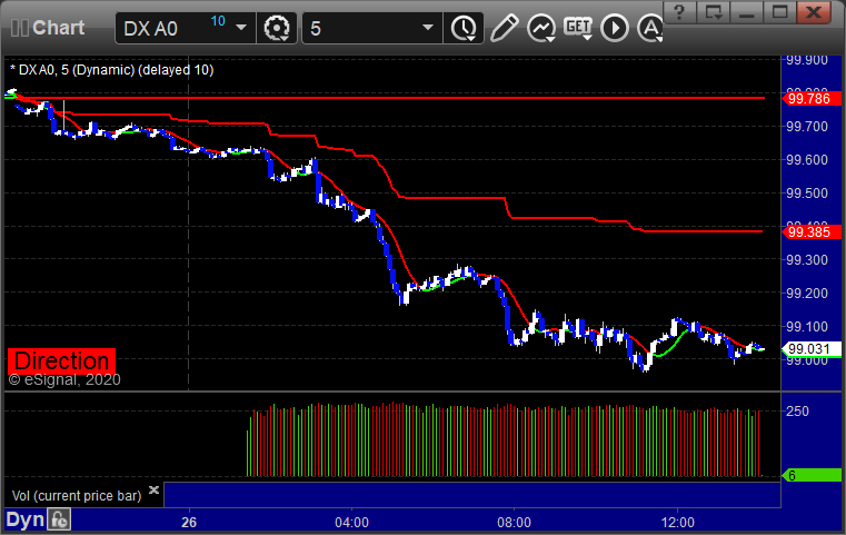 Here’s a look at the US Dollar Index intraday with our market directional lines: