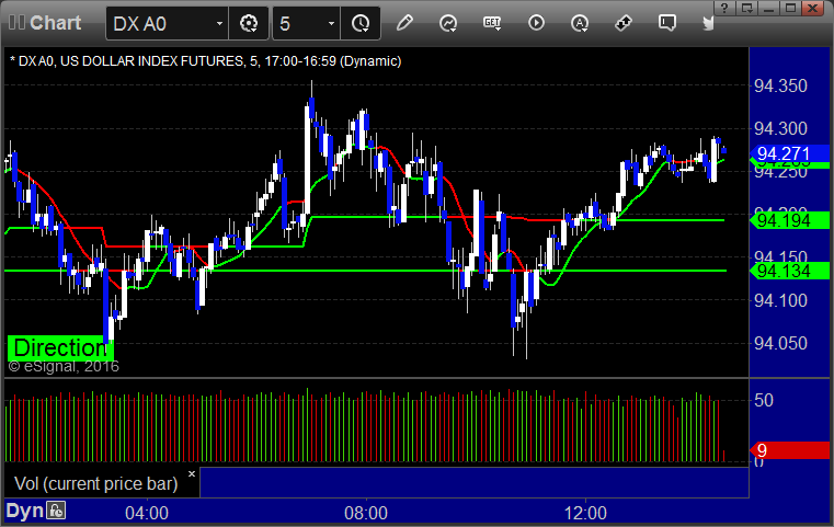 Here’s a look at the US Dollar Index intraday with our market directional lines: