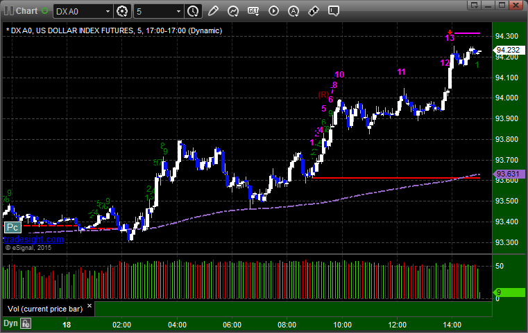 Here’s a look at the US Dollar Index intraday with our market directional lines: