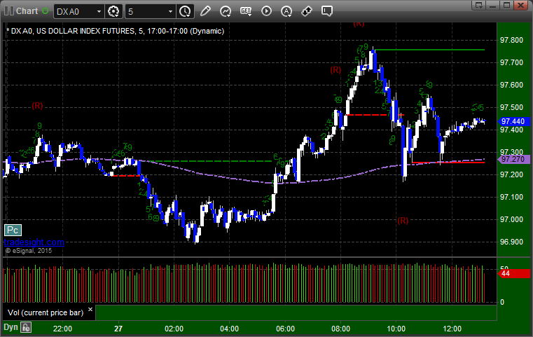 Here’s a look at the US Dollar Index intraday with our market directional lines: