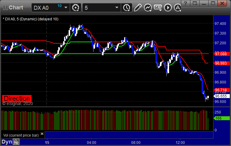 Here’s a look at the US Dollar Index intraday with our market directional lines:
