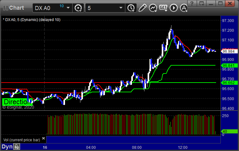 Here’s a look at the US Dollar Index intraday with our market directional lines: