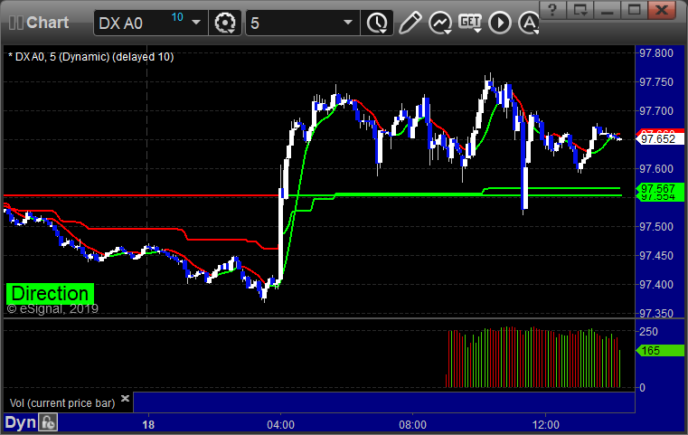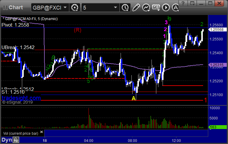 Not much range and a loser for the session. See GBPUSD section below. Here’s a look at the US Dollar Index intraday with our market directional lines: GBPUSD: Triggered short at A and stopped: PrevNext