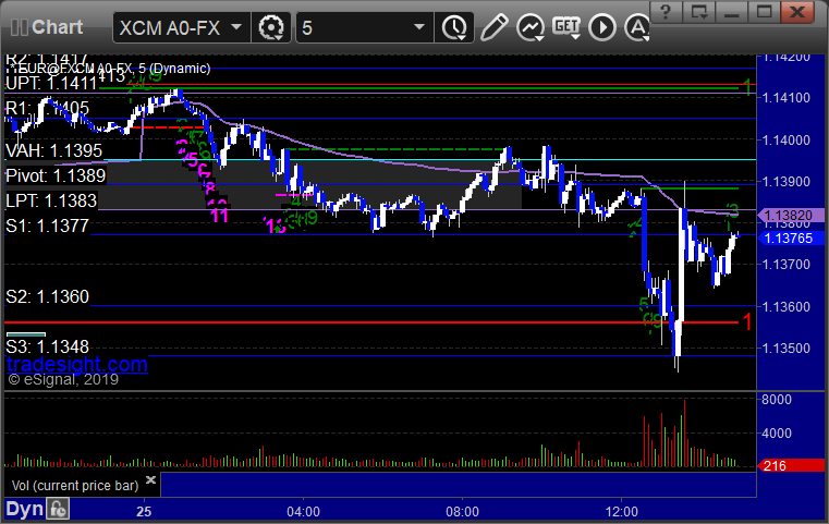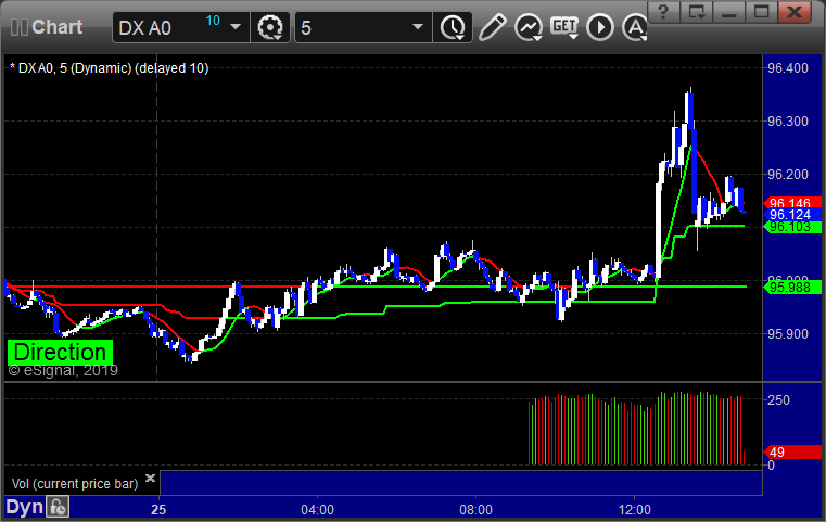 No calls because the Levels were too tightly spaced. Should be a little better tonight. Here’s a look at the US Dollar Index intraday with our market directional lines: EURUSD: PrevNext