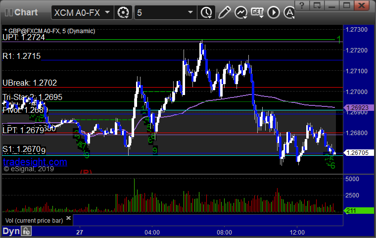 No calls for the session because the ranges from the prior night were so horrible. Should be a little better Levels spacing tonight. Here’s a look at the US Dollar Index intraday with our market directional lines: GBPUSD: PrevNext
