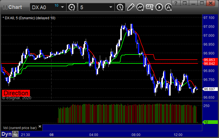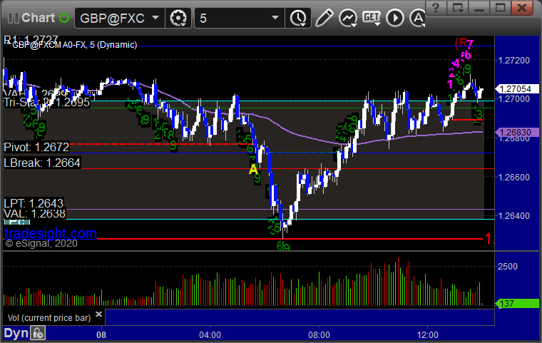 A loser for the session to start the week. See GBPUSD section below. Here’s a look at the US Dollar Index intraday with our market directional lines: GBPUSD: Triggered short at A and stopped: PrevNext