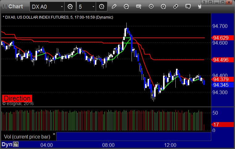 Here’s a look at the US Dollar Index intraday with our market directional lines: