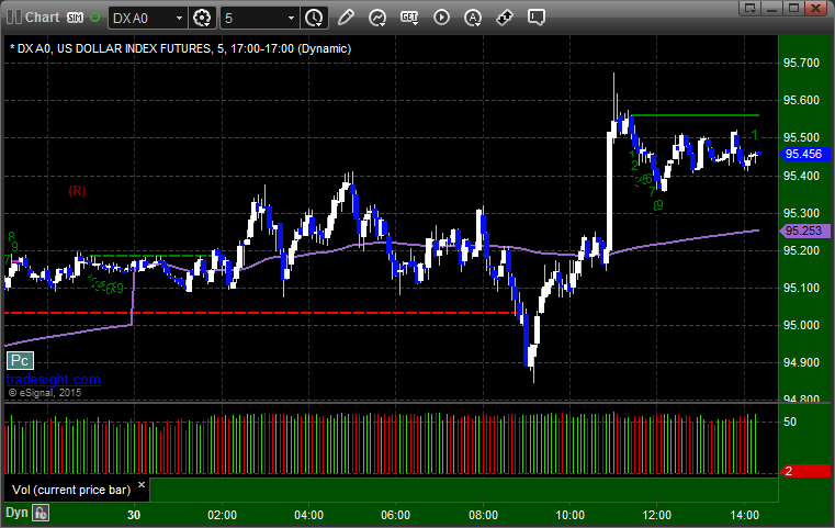 Here’s a look at the US Dollar Index intraday with our market directional lines: