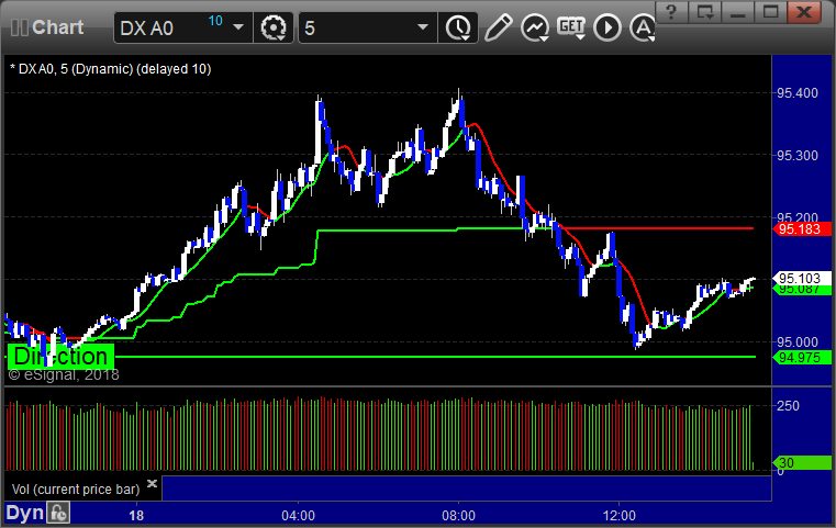 A dead session again. See EURUSD section below. Here’s a look at the US Dollar Index intraday with our market directional lines: EURUSD: Triggered short at A and stopped: PrevNext