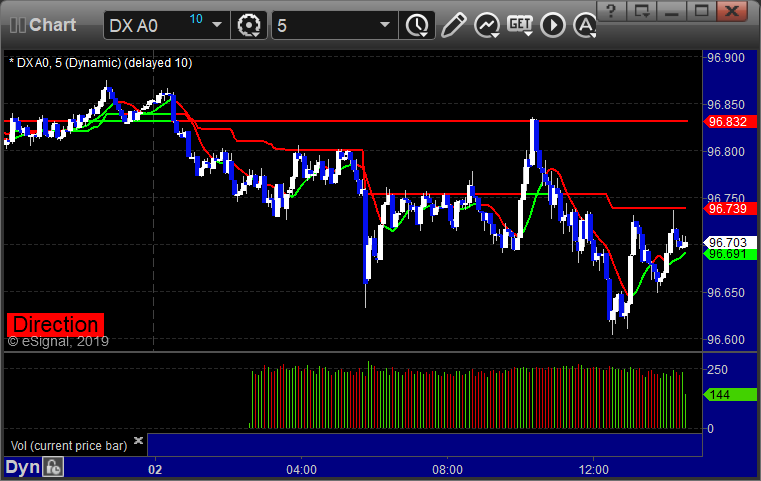 Here’s a look at the US Dollar Index intraday with our market directional lines: