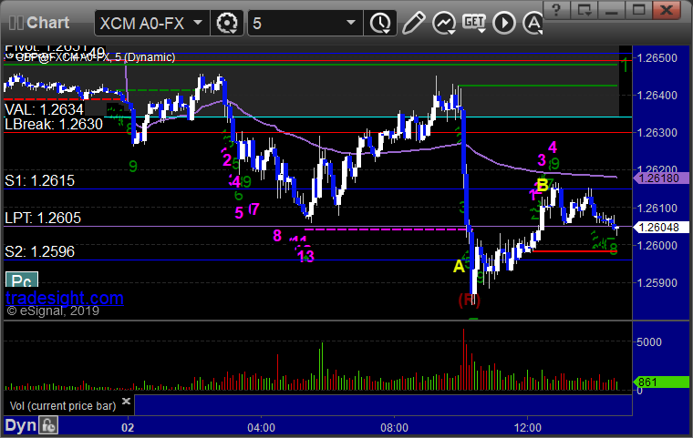Came in short GBPUSD, new trade triggered short at A and stopped at B, old trade we closed at end of chart for a gain: